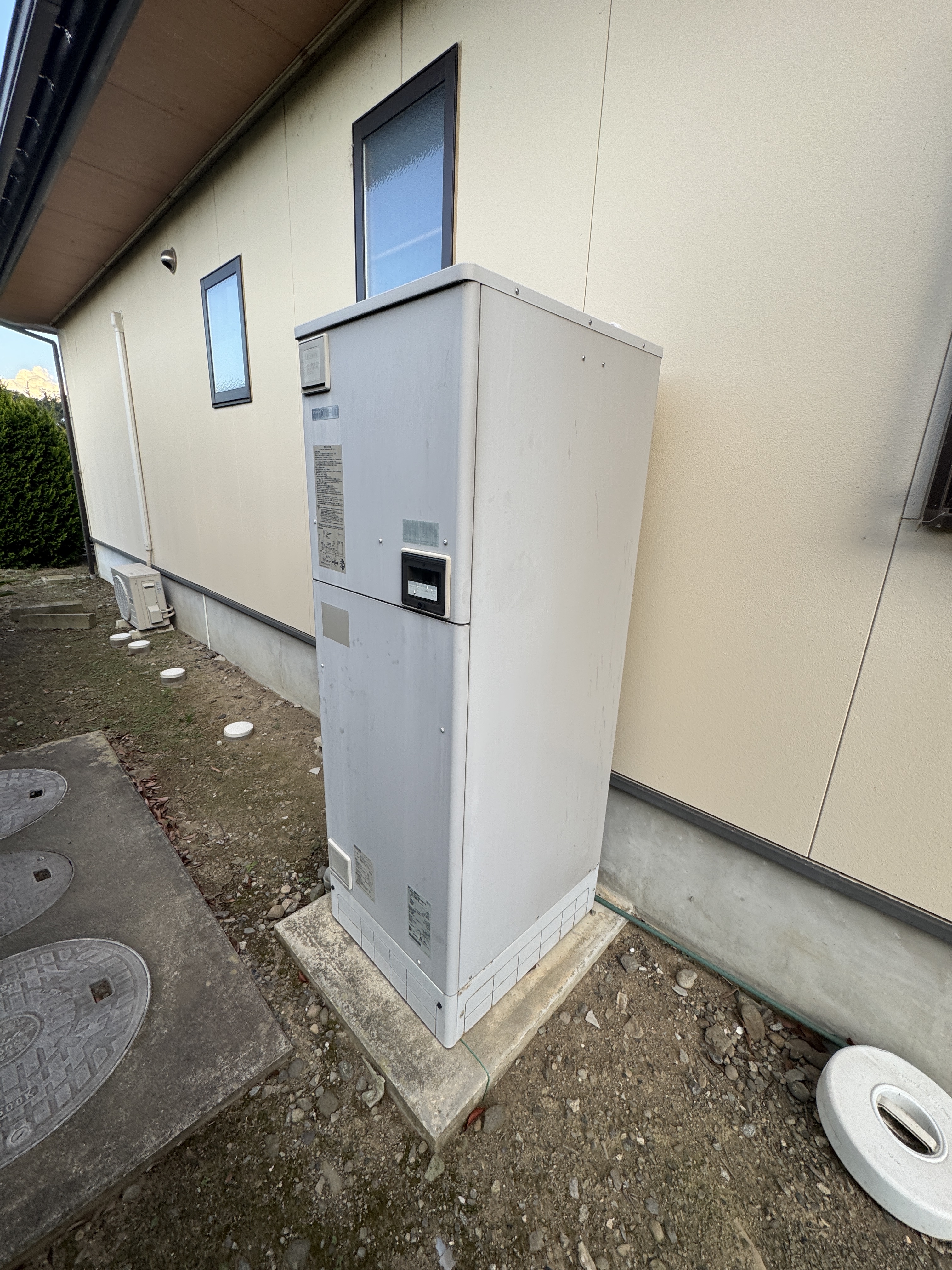 たまたま蓄電池のお問い合わせをいただき、その中で一番電気がかかっているのがこの三菱電気温水器だと思われたため、先ずはこれを交換してから蓄電池を考えようということになりまして、電気温水器交換工事となりました。