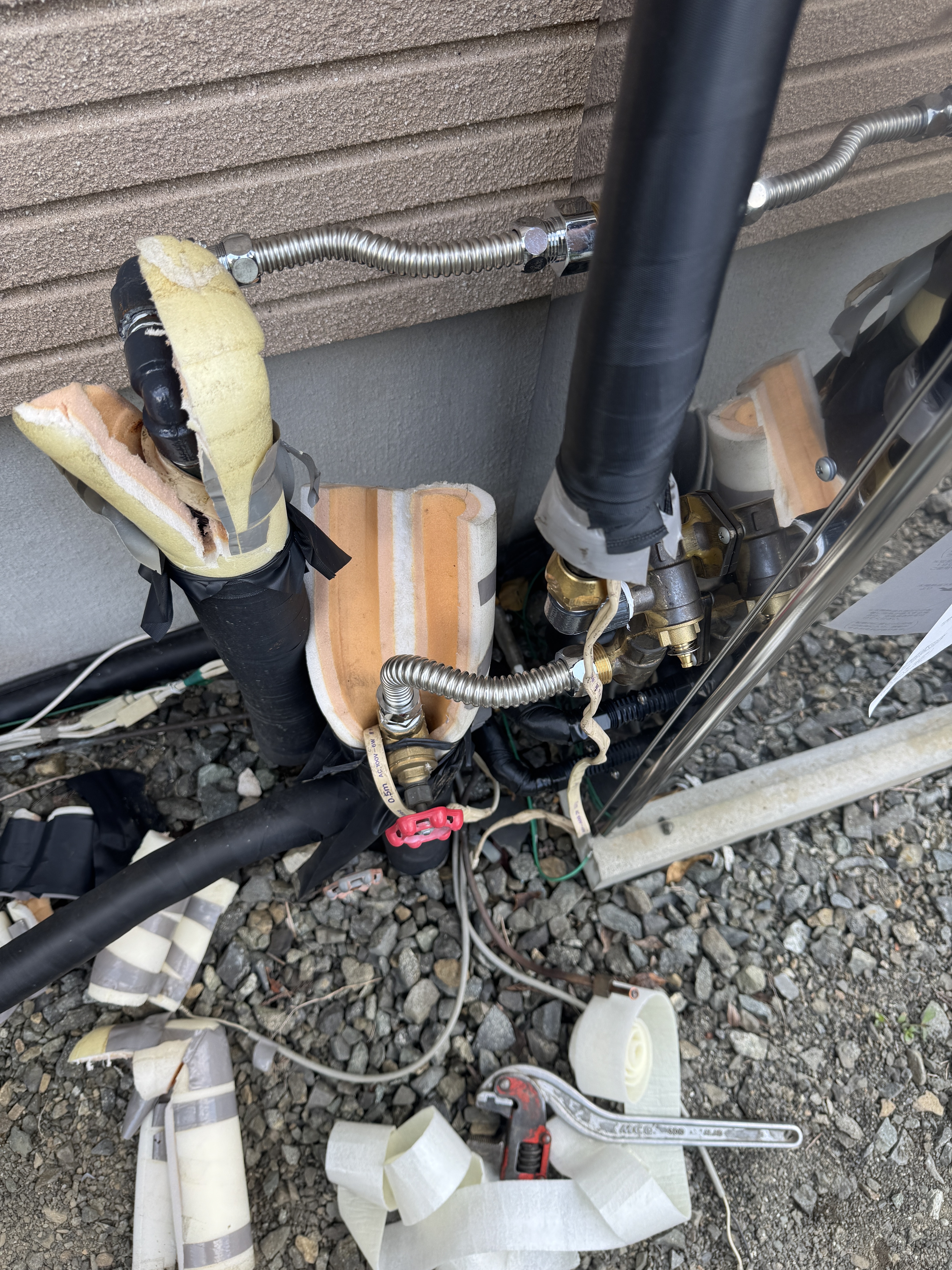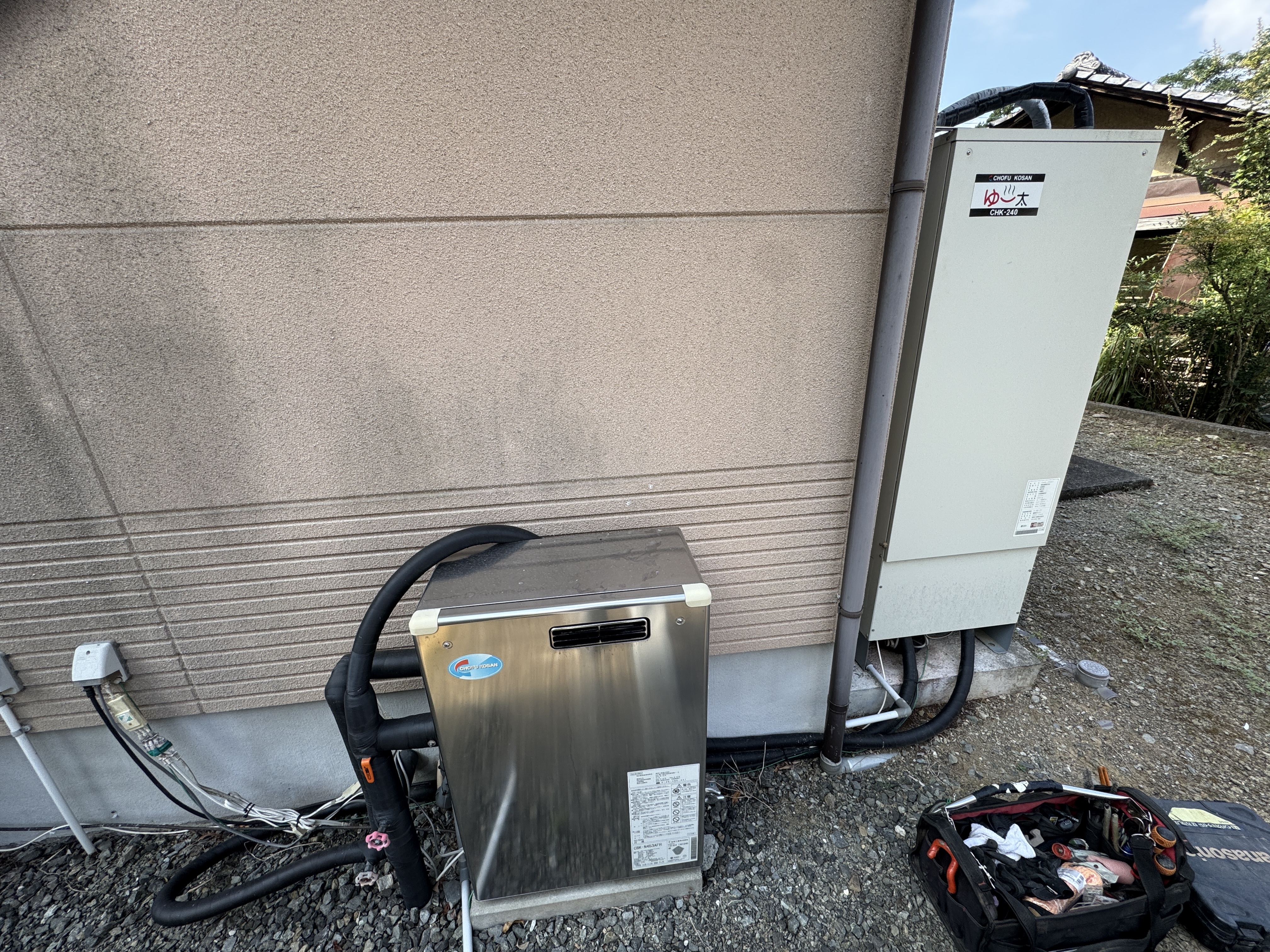 通常の石油給湯器に比べてやることが多いため、9:30スタート16時終了となりました。