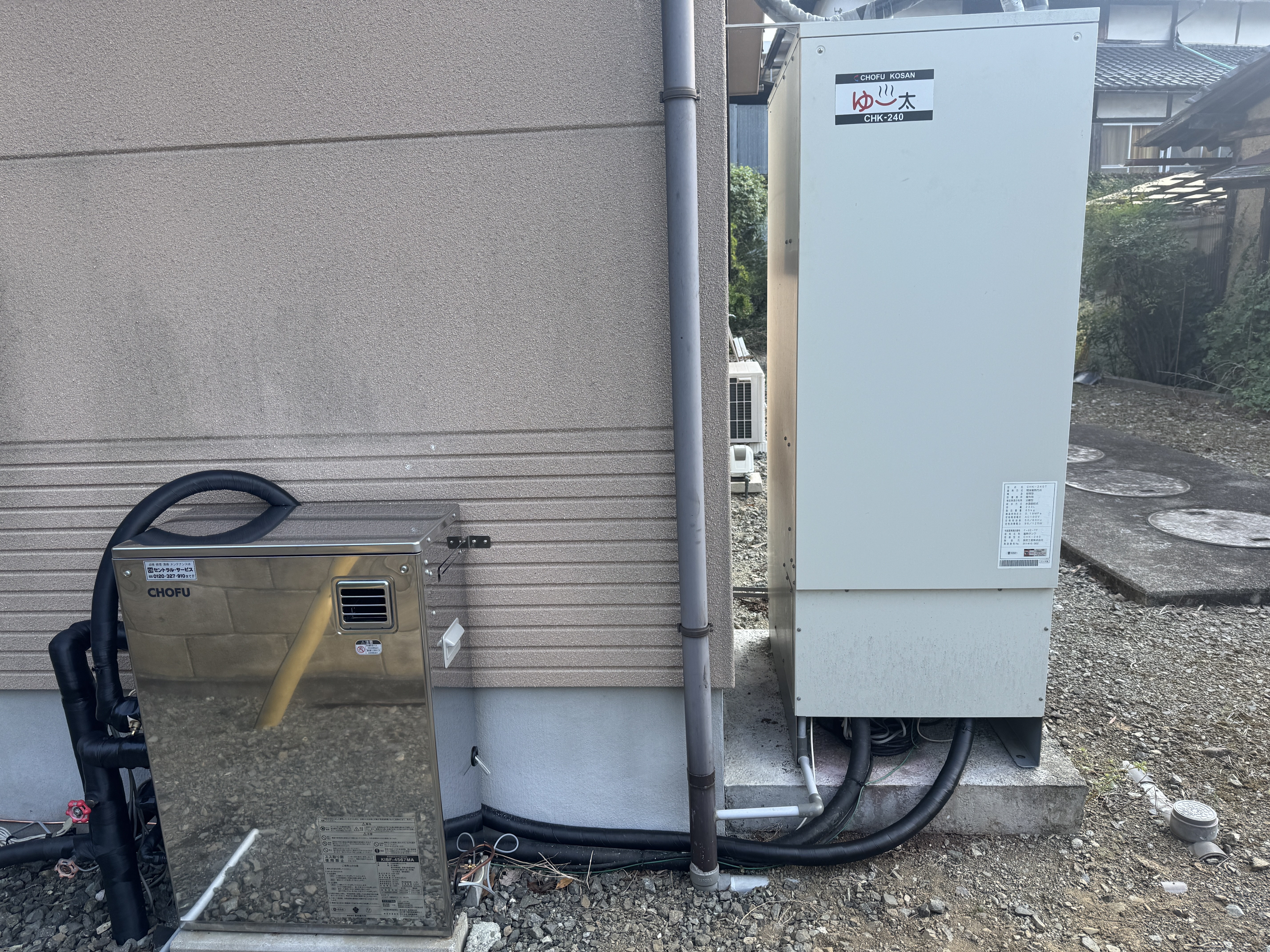こちらのお客様は長府工産の強制循環型太陽熱温水器、CHK-240もお使いいただいており、この太陽熱温水器と石油給湯器を前回取り付けた業者が、太陽熱温水器のお湯をそのまま石油給湯器につないでしまっていたため、自動お湯張りをすると熱いままお風呂にお湯を張ってしまうということで、いつもお風呂に入るときはシャワーからお湯を貯めていたとのことでした。