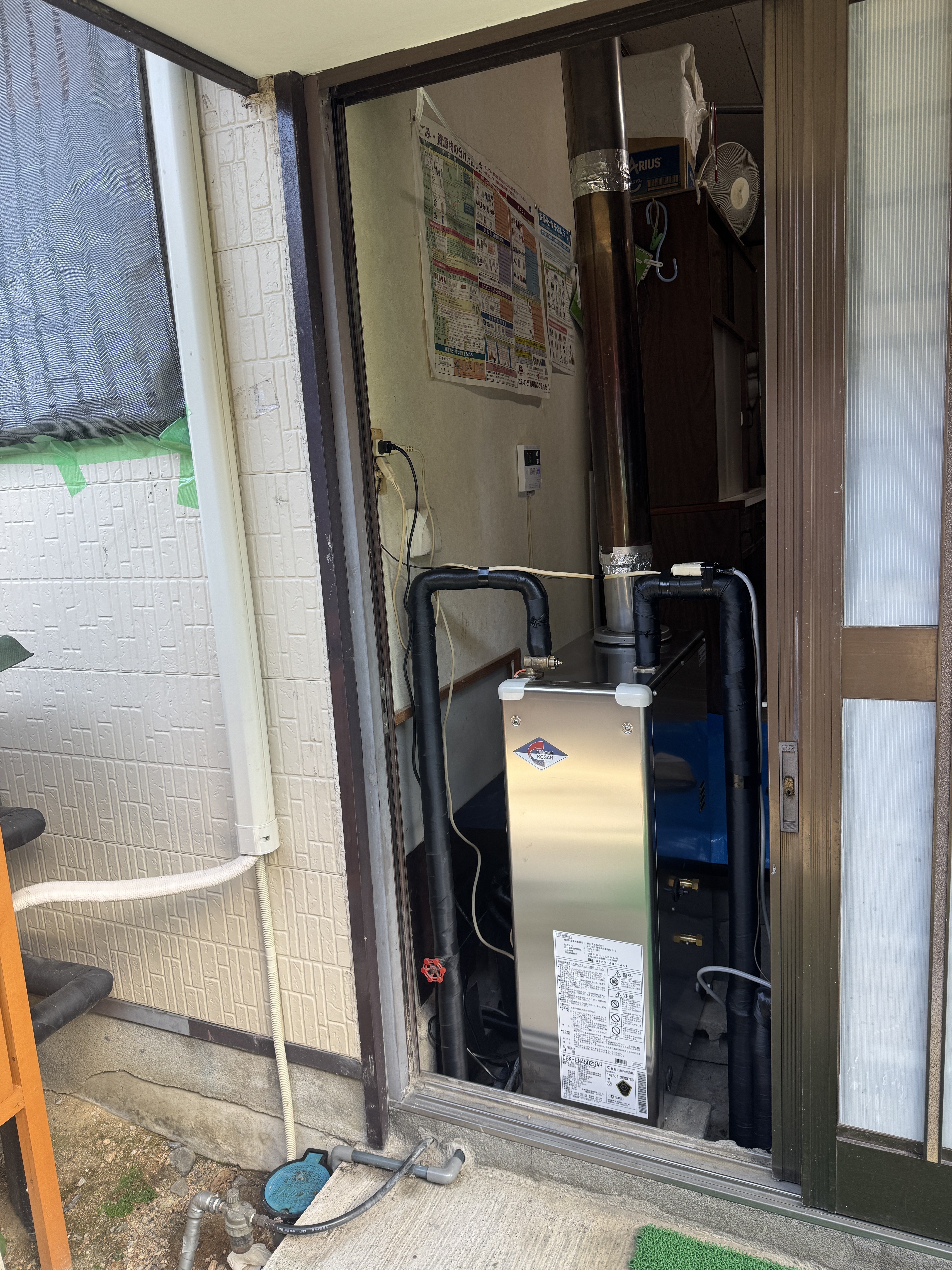 ラインポンプでお湯の管にボイラー内部のお湯を循環させているため、混合弁付きの機種ではエラーになってしまうとのことで選定が難しかったのですが、この機種に変更してお客様には「シャワー圧が倍になった」とか「自動お湯張り便利だね」ととてもお喜び頂きました。