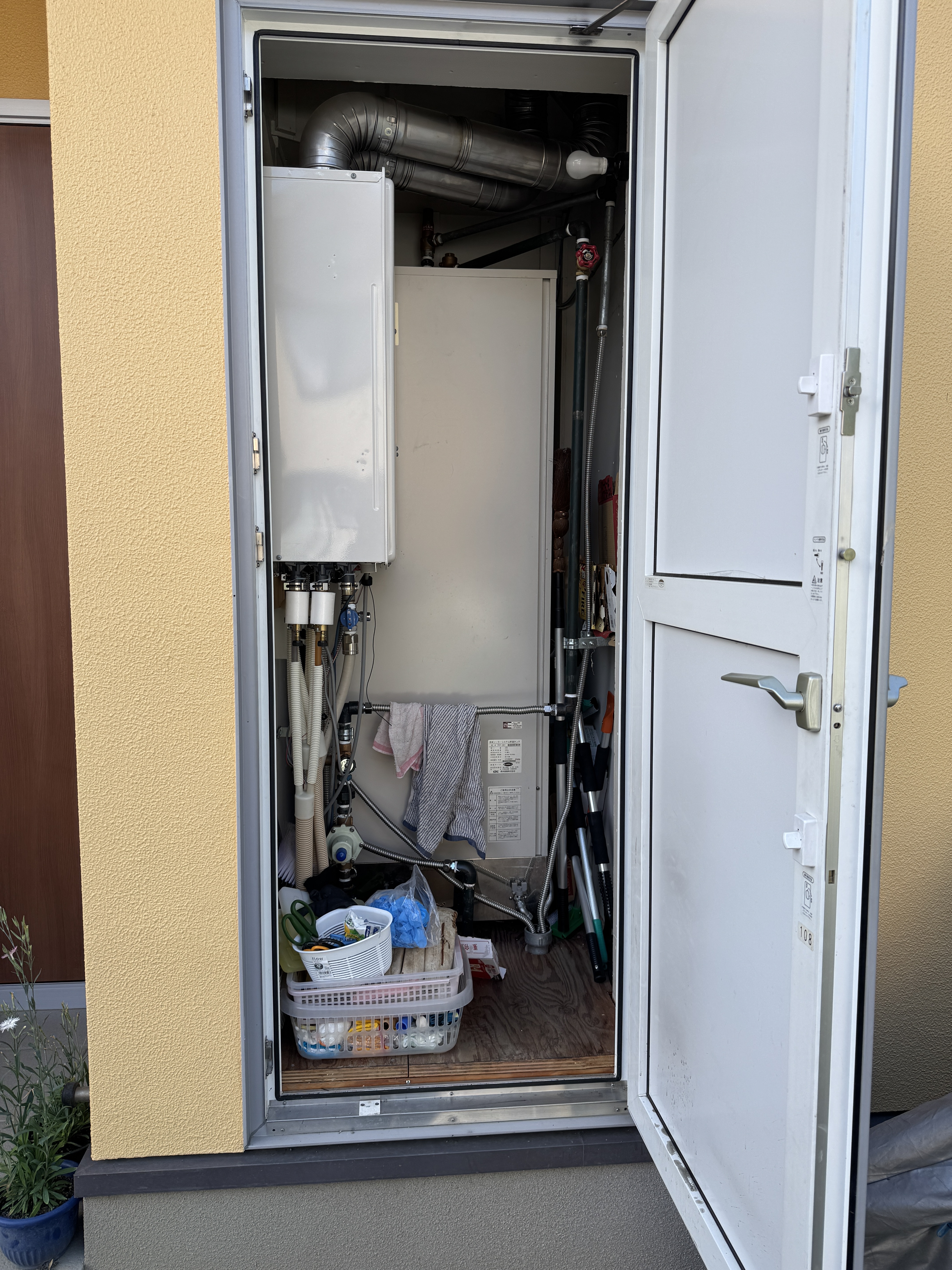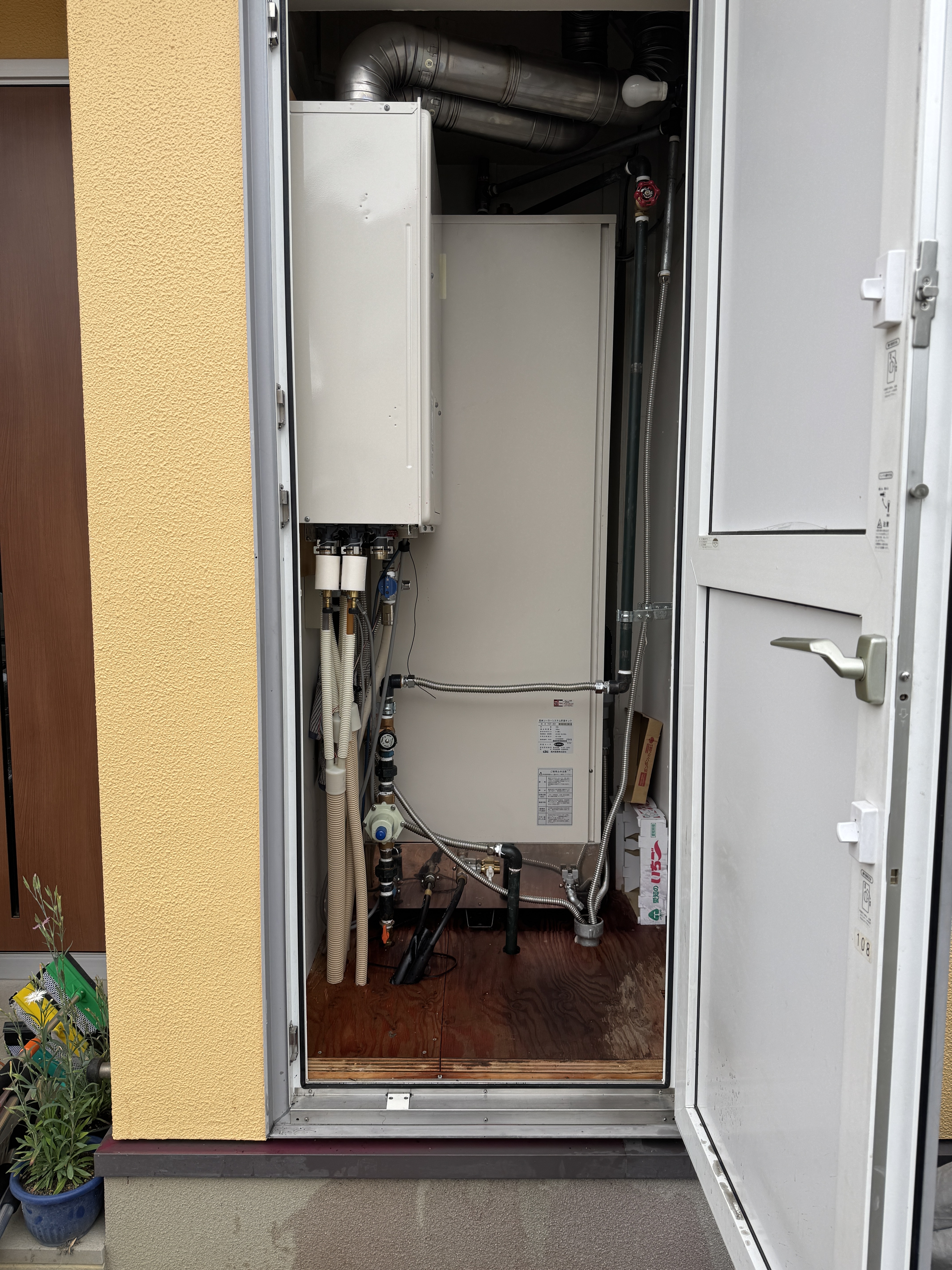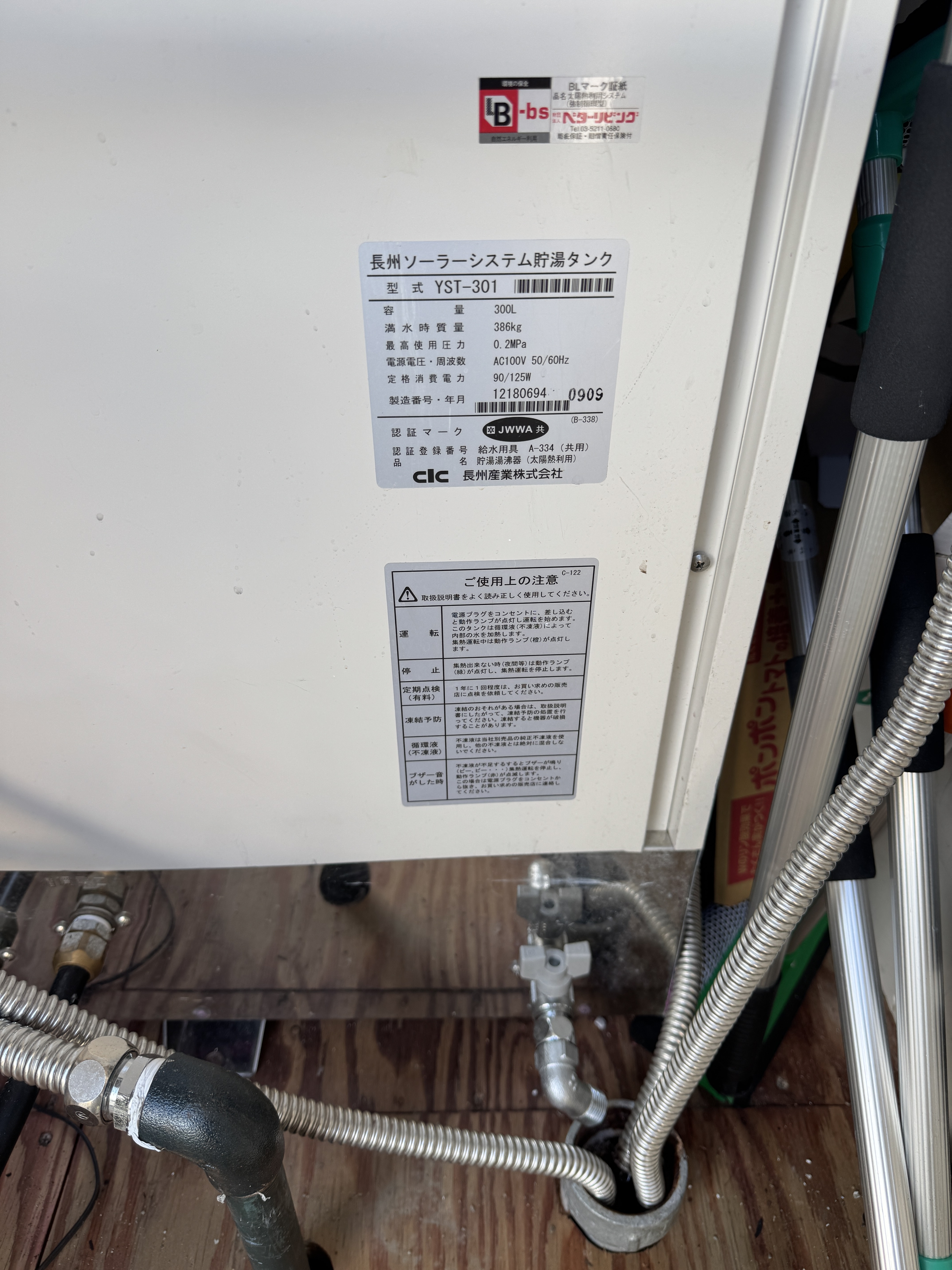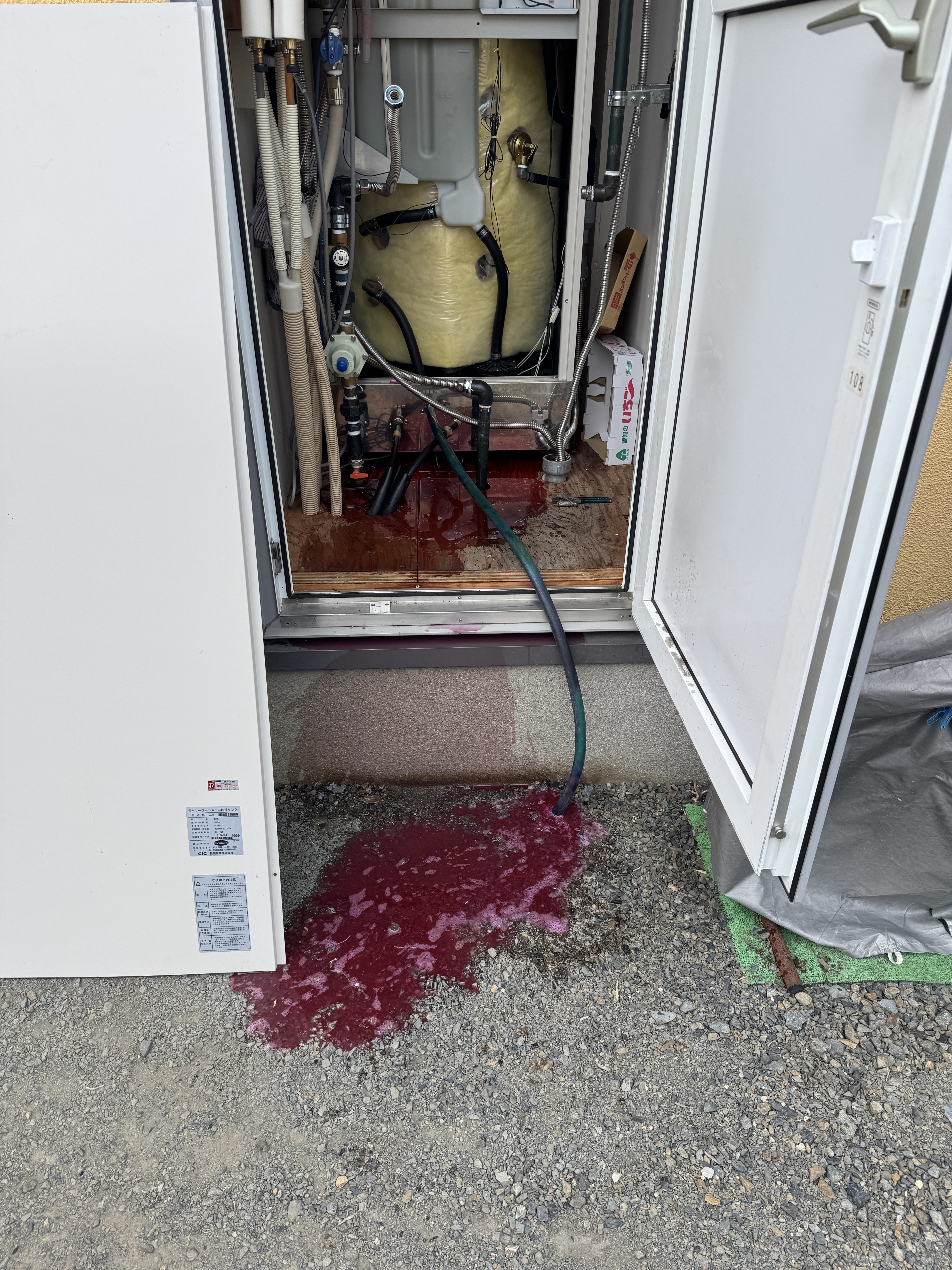 こちらのお宅に初めて来たときは不凍液が目詰まりを起こしていたり、屋根の三枚のパネルを支えている番線(針金)が切れてパネルがずり落ちていたりと補修が大変でした。
