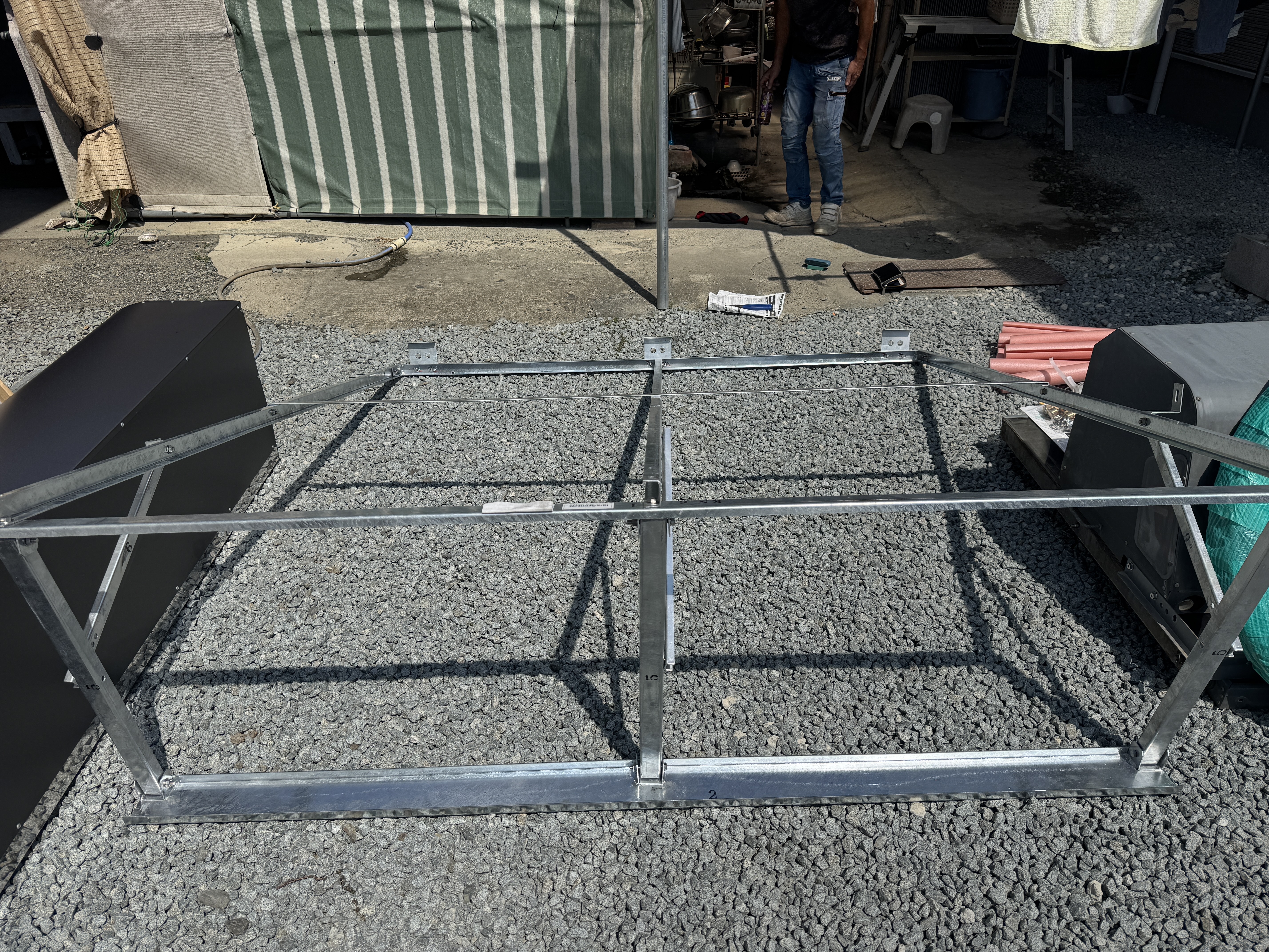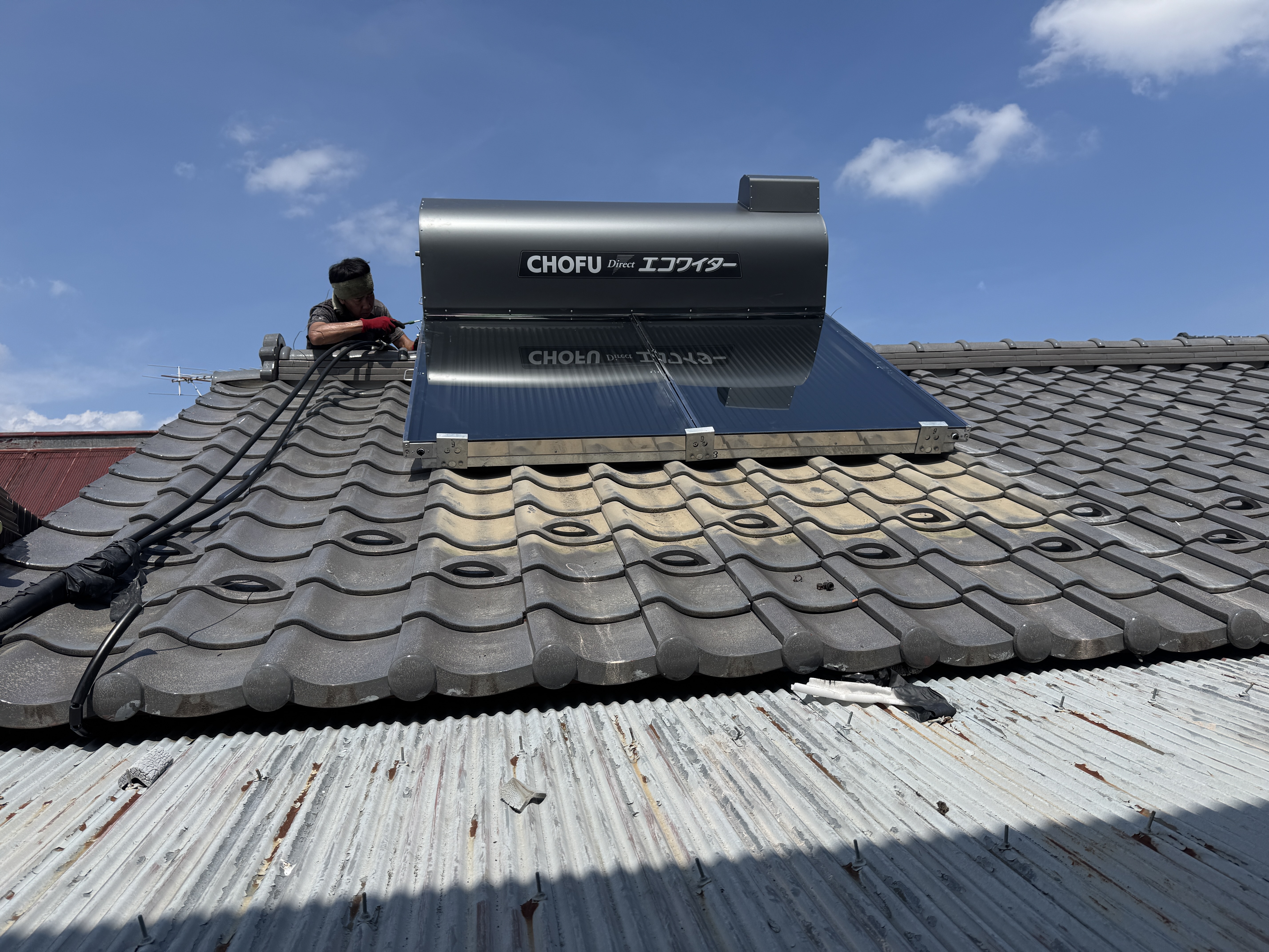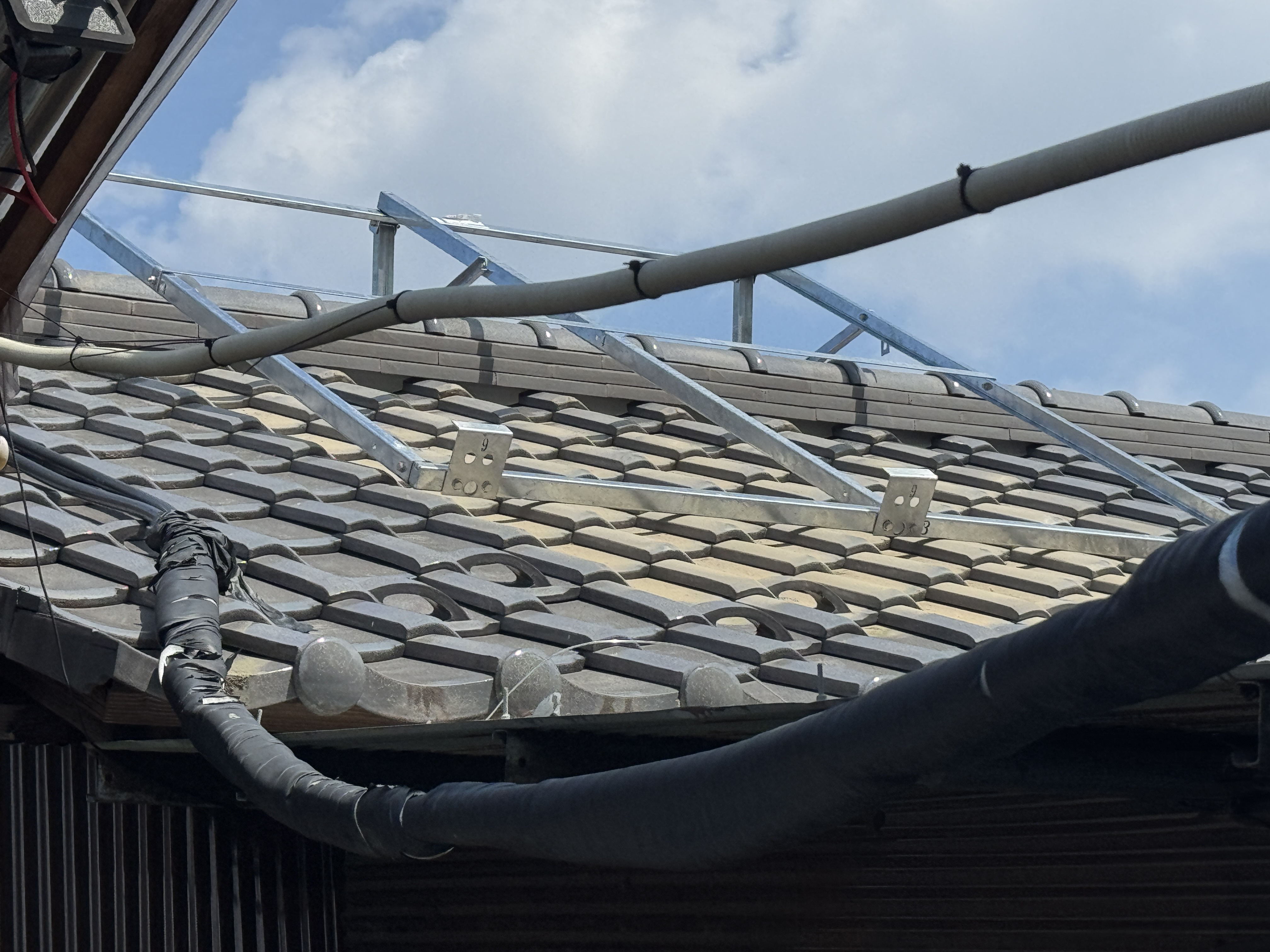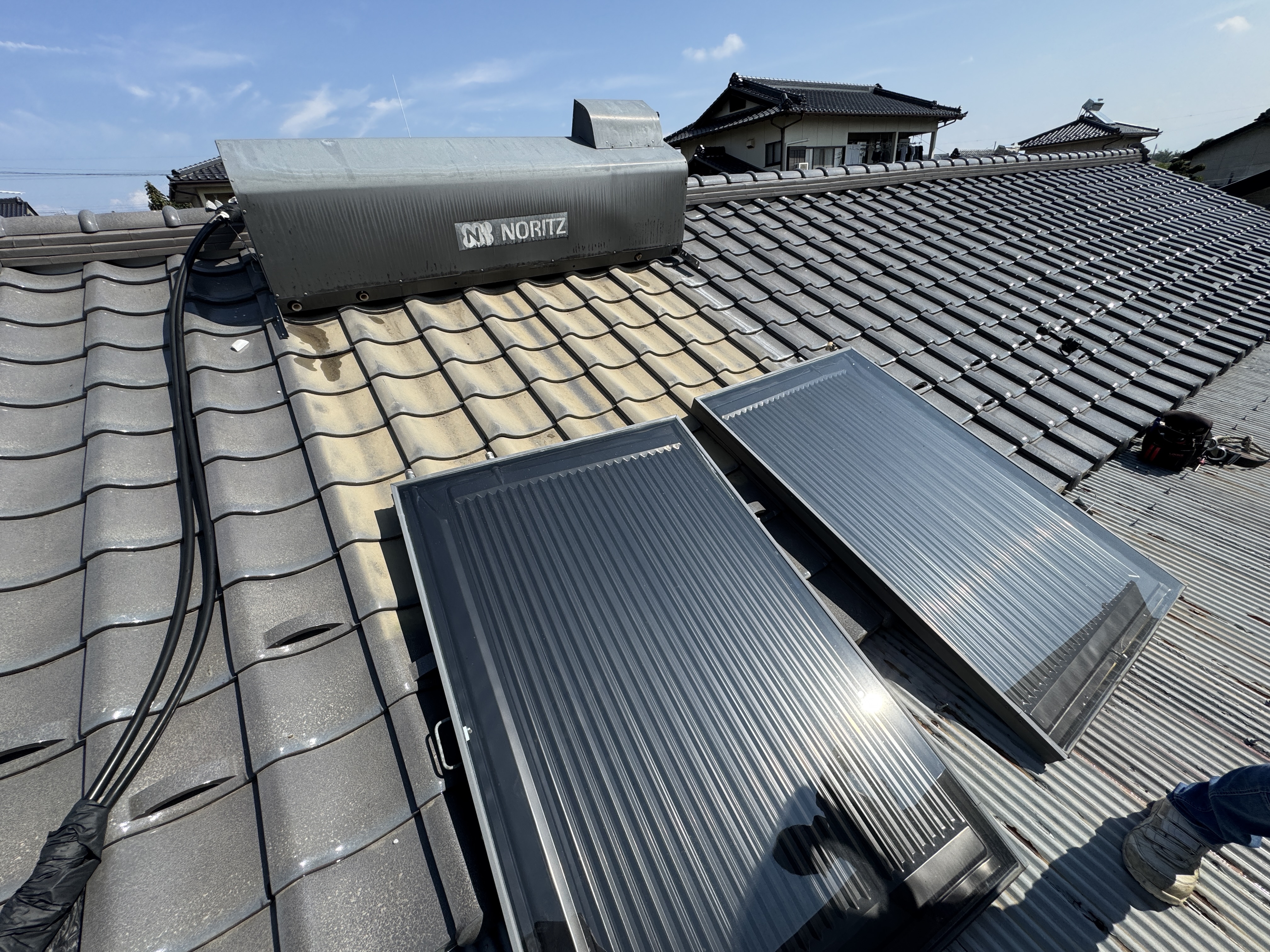 9/10はNORITZの太陽熱温水器が少し下にずれ落ちているということと、太陽熱温水器の日当たりをよくしたいとのことで長府製作所の直圧式太陽熱温水器、SW1-213Dを架台付きで取り付けました。