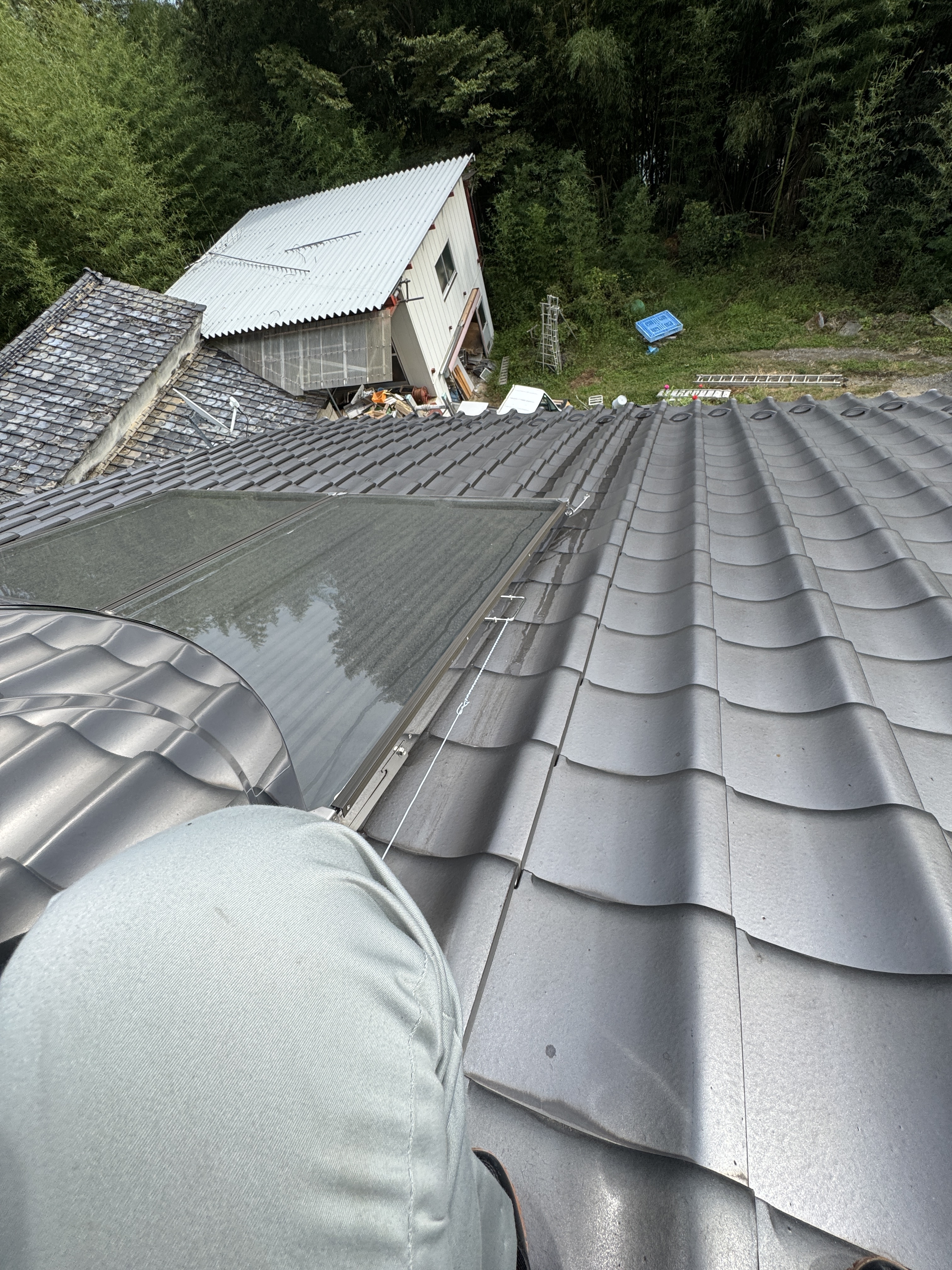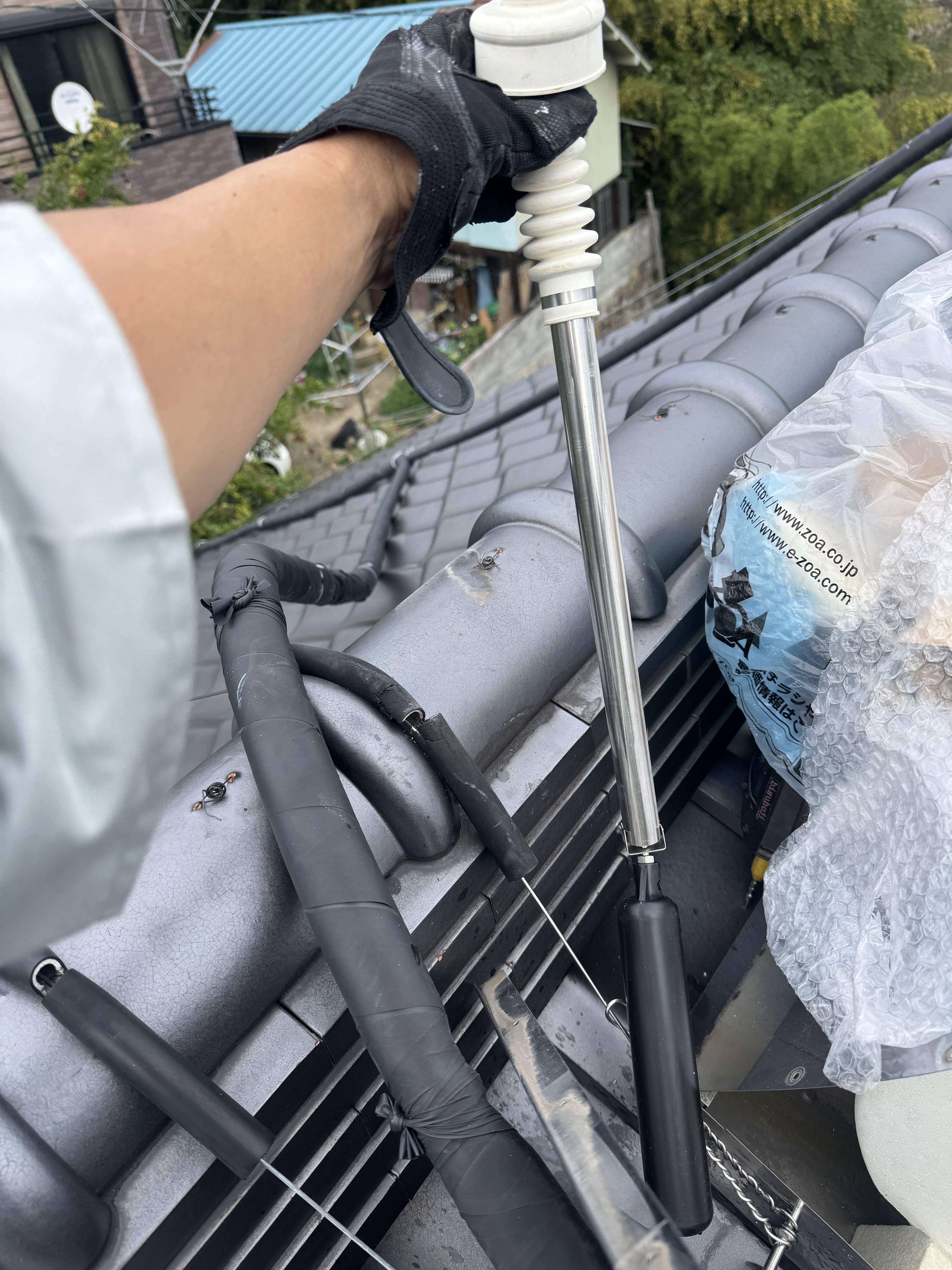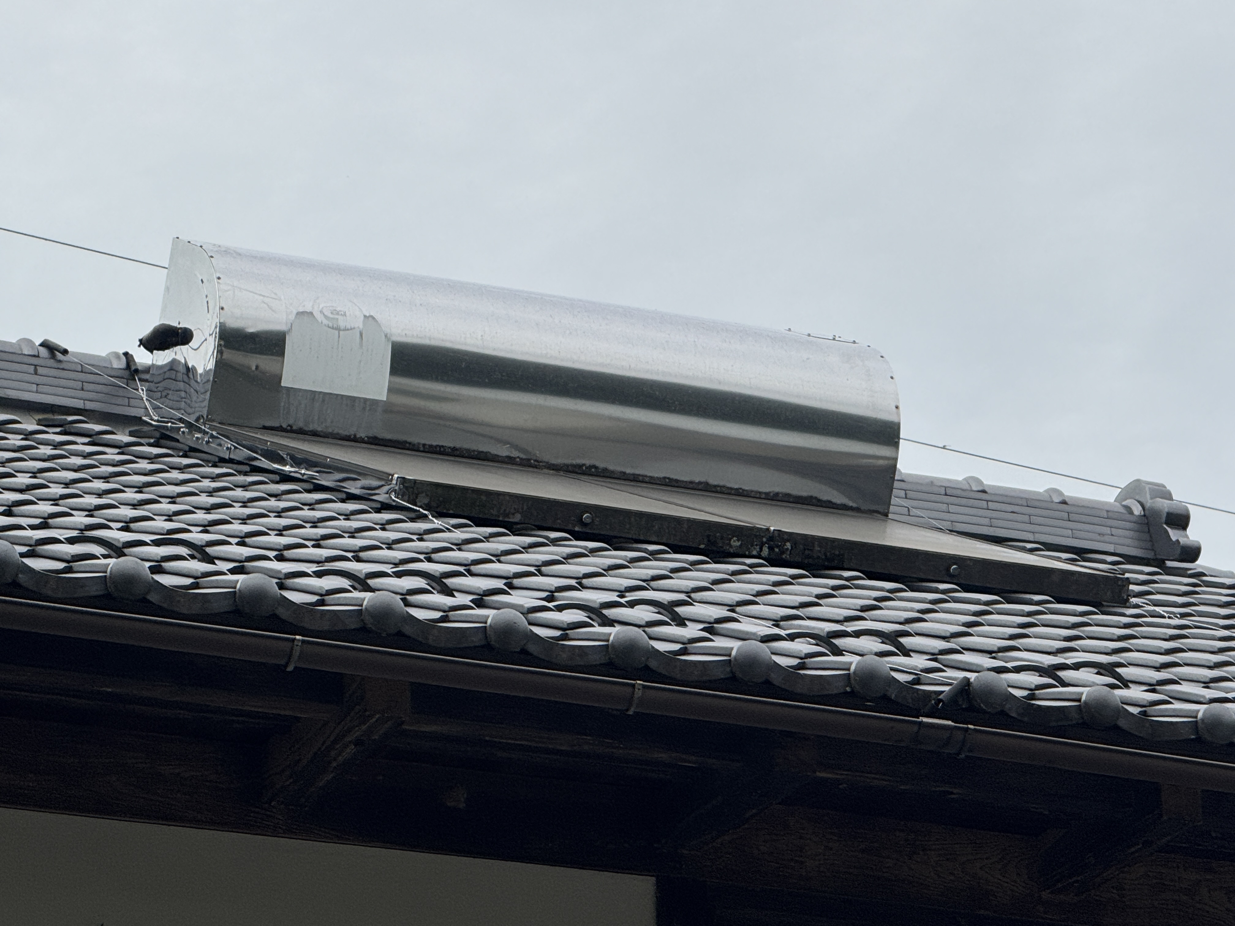 採湯管を交換する場合はサイドパネルを外して修理を行うのですが、こちらのお宅では屋根の勾配が結構あるため、少し大変でしたが、サービスで保温剤が見えてしまっているところなどをキャンバステープ補修も終え、90分ほどで終了いたしました。