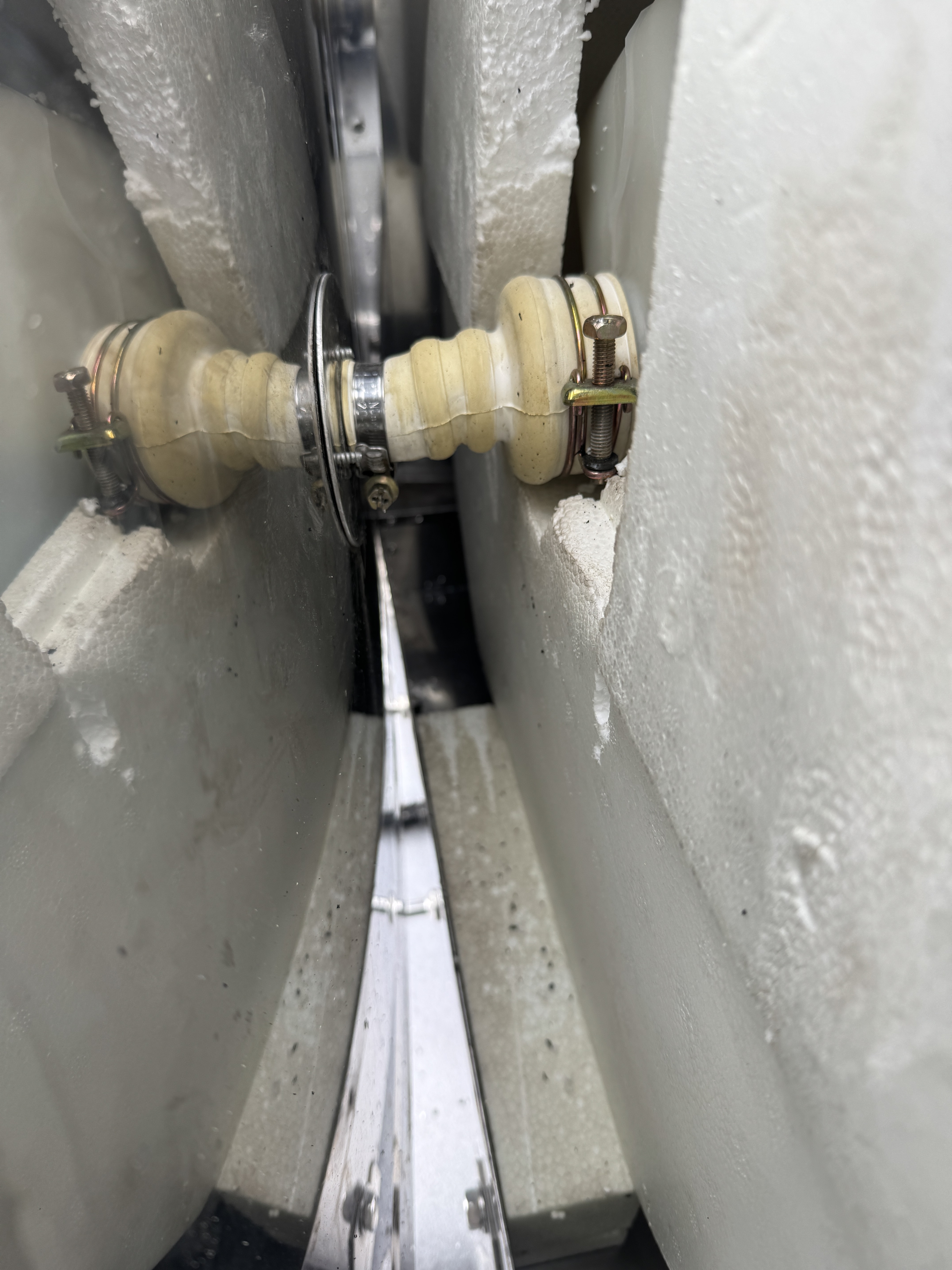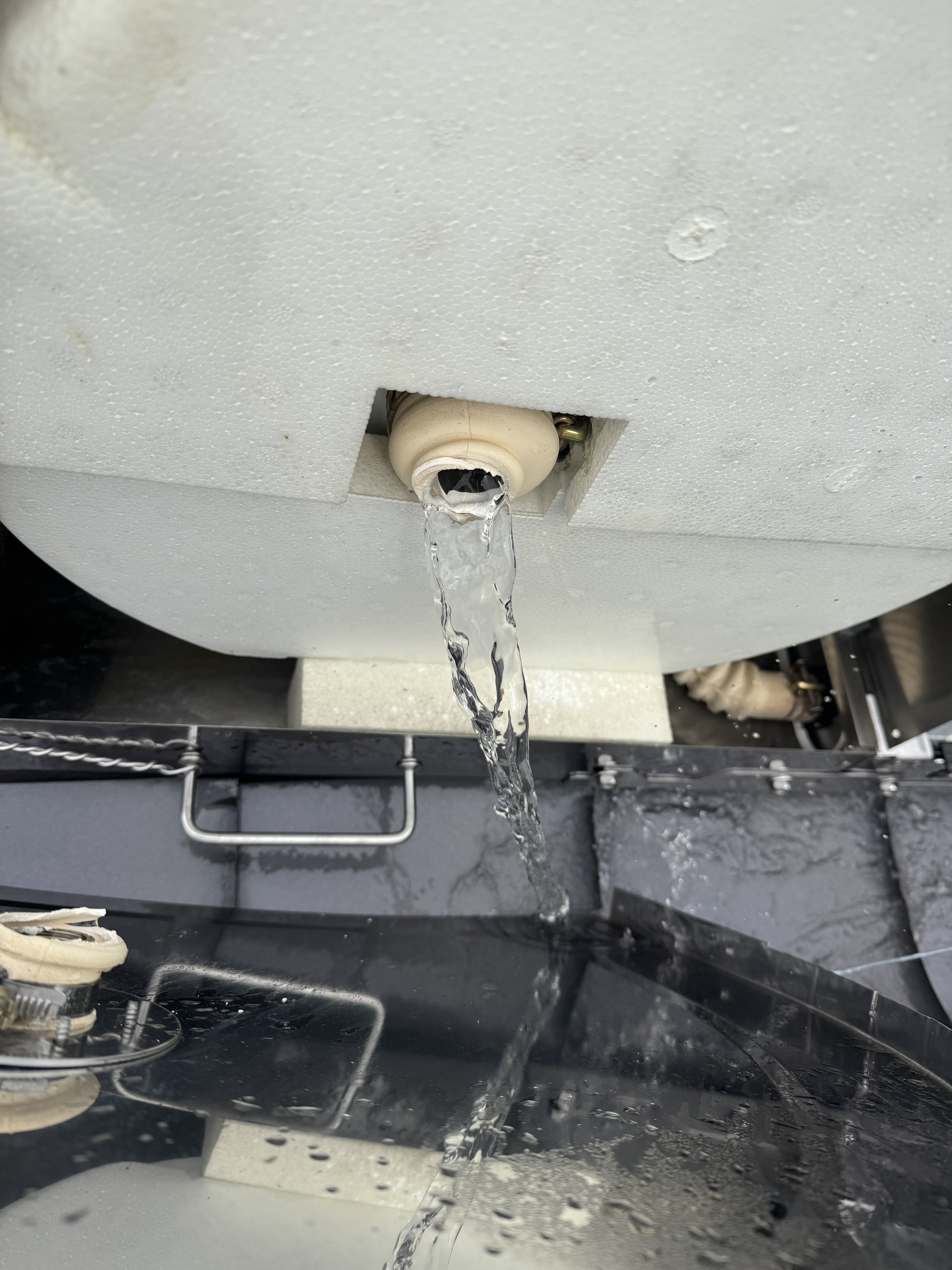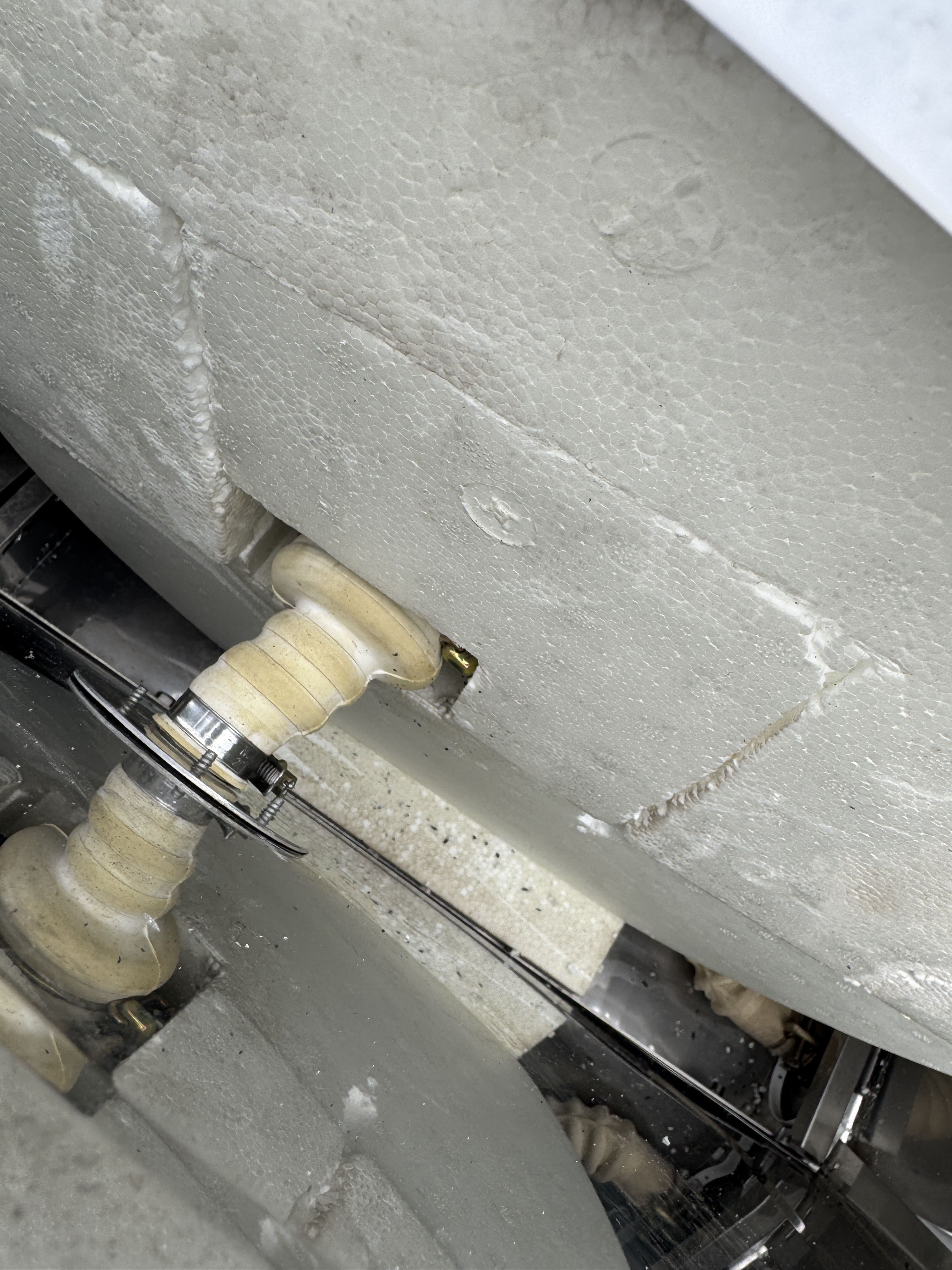 採湯管を交換する場合はサイドパネルを外して修理を行うのですが、こちらのお宅では屋根の勾配が結構あるため、少し大変でしたが、サービスで保温剤が見えてしまっているところなどをキャンバステープ補修も終え、90分ほどで終了いたしました。