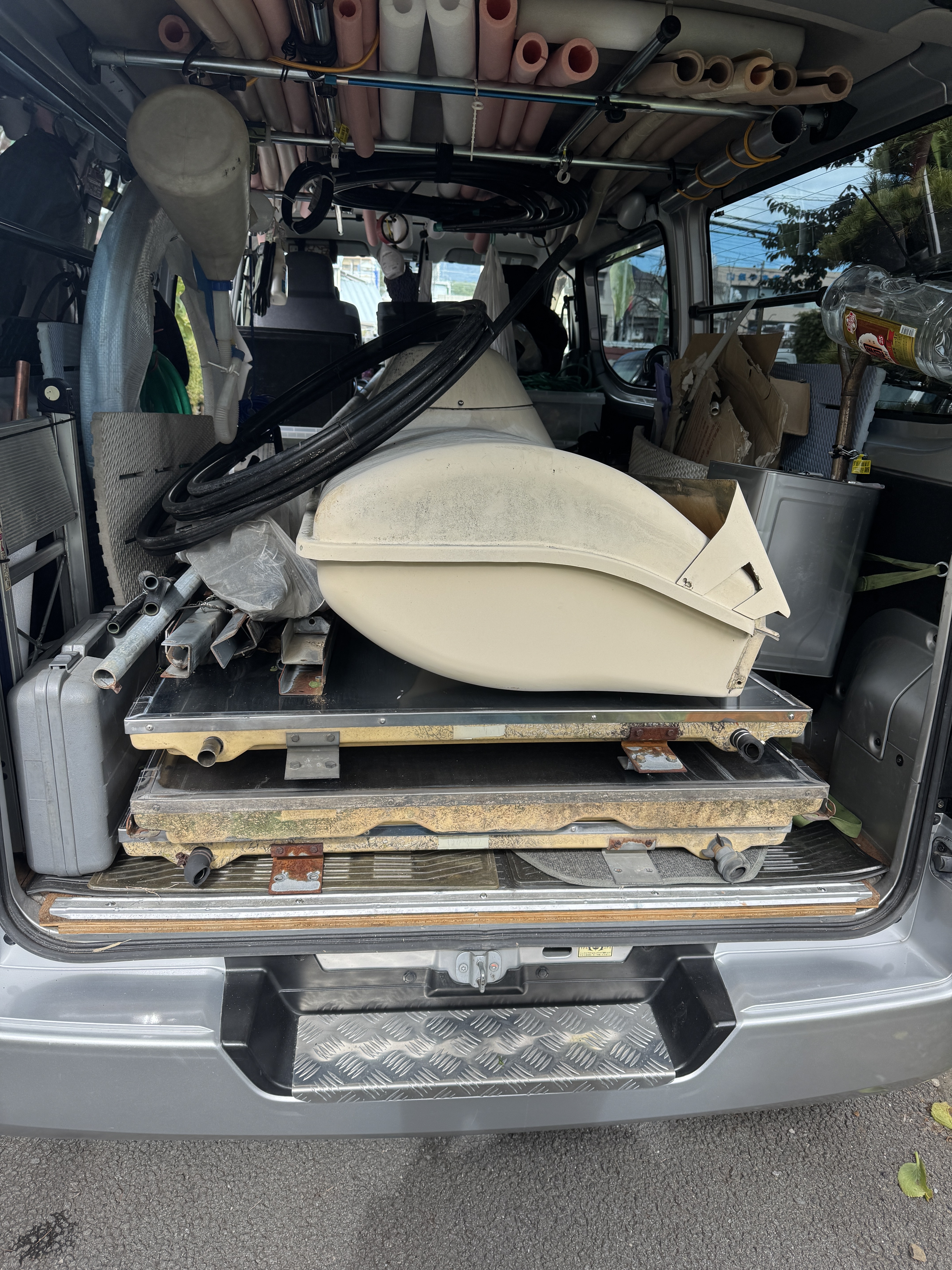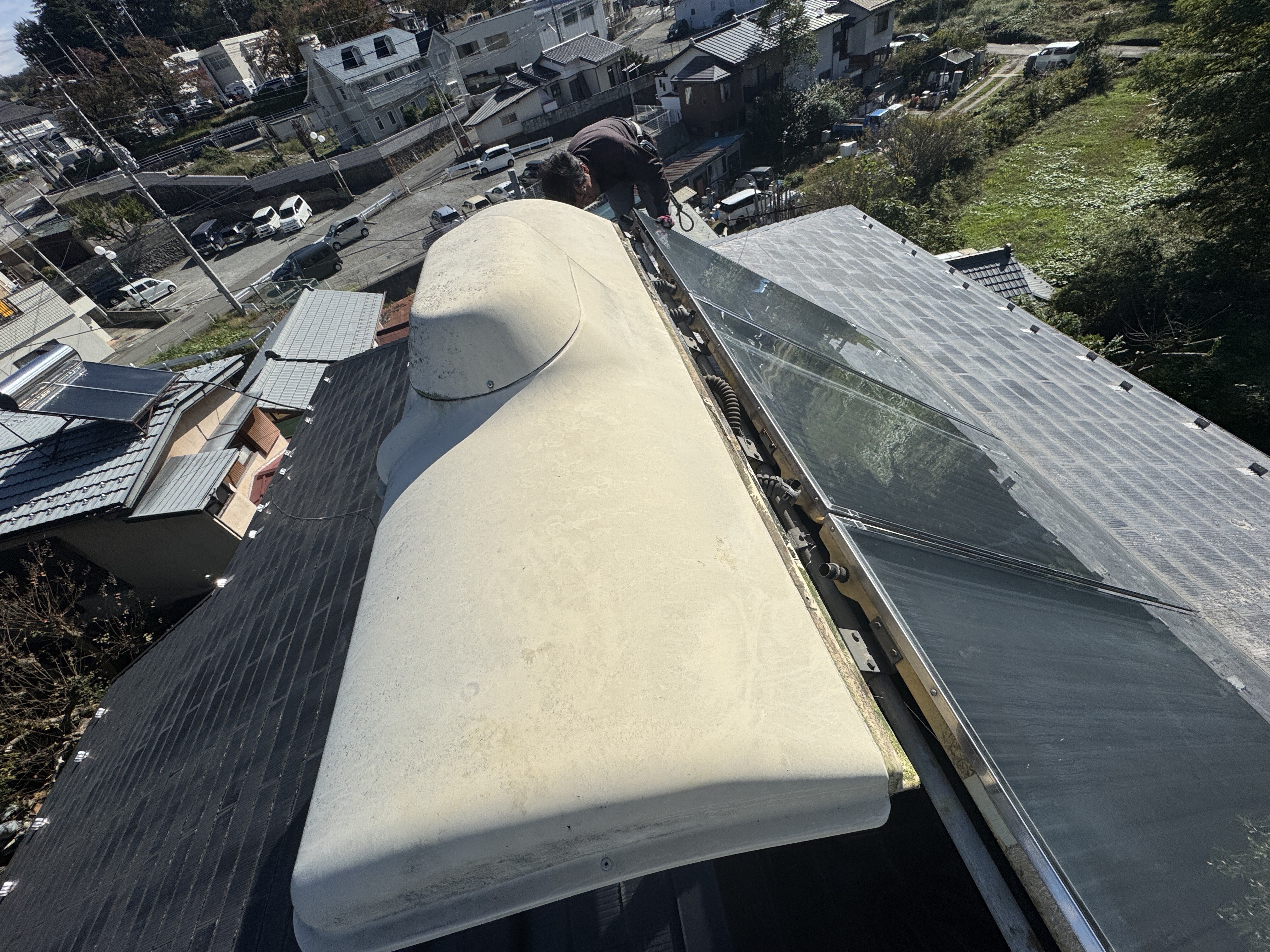 10/20は太陽熱温水器の撤去工事を行いました。テンリューというメーカーの太陽熱温水器で、しばらく使っていない状態で屋根に設置してあり、非常に危険な状態でした。